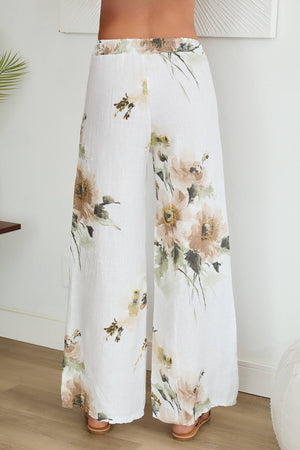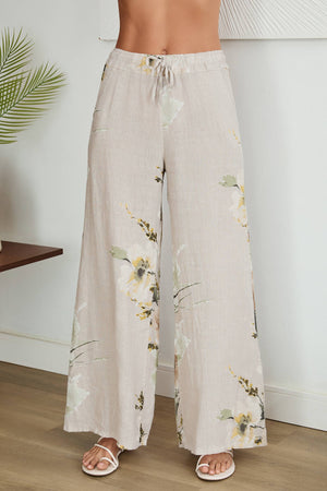 Crafted from high-quality linen, these pants offer breathable comfort and a stylish wide-leg silhouette. The elegant magnolia flower print adds a fresh, eye-catching touch, while practical pockets keep essentials close. Ideal for casual outings or relaxed evenings, these pants combine effortless style with everyday functionality.