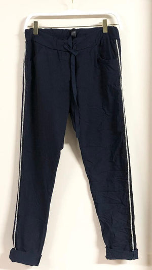 RHINESTONE SIDE STRIPE CRINKLE JOGGER 95% VISCOSE 5% ELASTIC