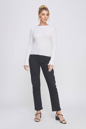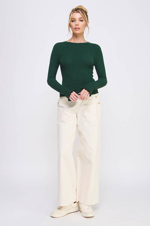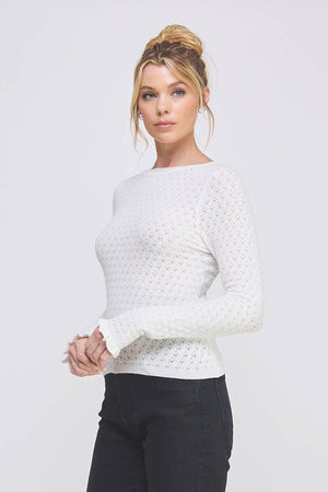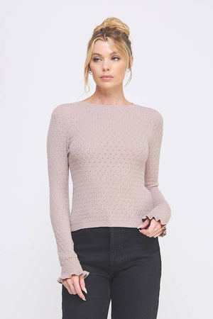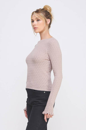Allie Rose - Pointelle Knit Top with Ruffle Sleeve