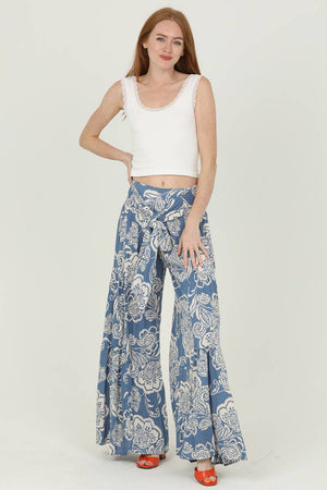 Experience the bohemian and vintage influences of ANGIE's wide leg pants in blue. Designed with tiers and a tie waist, these junior fit pants encapsulate the brand's well-traveled and romantic spirit. Perfect for everyday wear or a resort vacation, these floor-length pants feature an abstract & geometric pattern with a regular rise style. Discover the artistry in ANGIE's designs that bring clothing to life.