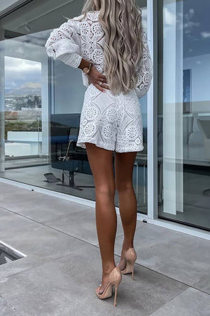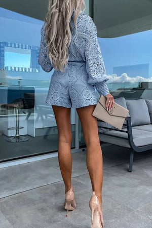 Chic Design: Effortlessly stylish with a full lace blouse and matching shorts, perfect for a trendy look. Versatile Wear: Mix and match the blouse and shorts for various occasions, from casual outings to evenings out. Comfortable Fit: Soft and breathable fabric ensures all-day comfort and ease of movement. Easy to Style: This set simplifies your outfit choices with a coordinated ensemble. Attention to Detail: Delicate button details and lace accents add a touch of elegance.
