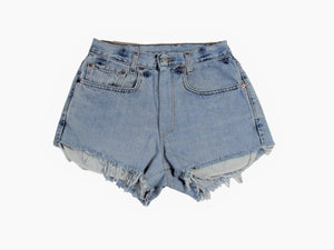 Our most popular, sustainable garment: Upcycled Denim Shorts! What is is UPCYCLED? Each pair is re-tailored by hand from a secondhand pair of Levi's, giving them new life and an updated high-waisted fit. Denim shades vary, and most original hardware, buttons, and patches are in-tact. Each one is unique!