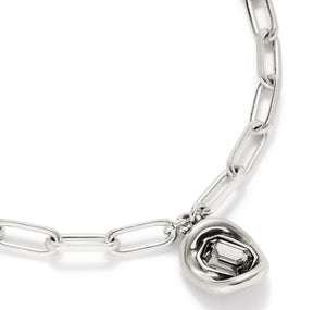 Sterling silver-plated chain with links and a central crystal piece. Made in Spain with a 100% handmade process.Now is the time to trust your instincts and choose jewelry that you always wanted but never dared to wear. Choose links if you dare to go further. Discover the collection ser valiente.