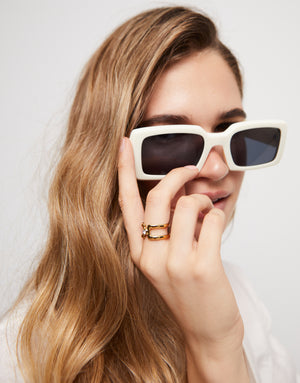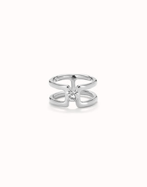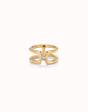 Two options : Double 18K gold-plated ring with white central topaz or double sterling silver-plated ring with white central topaz Made in Spain with a 100% handmade process .A collection in which topaz, clean lines and geometric shapes become protagonists, without filters. A collection ready to wear at any time or situation. Discover the collection ser indomable.