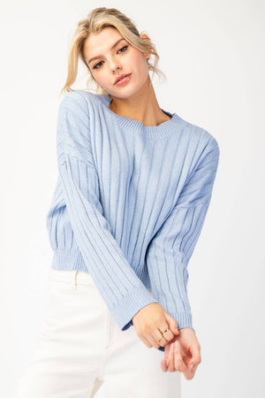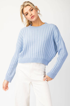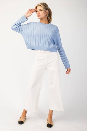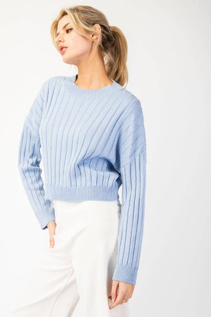 CROPPED RIBBED KNIT SWEATER TOP 75% ACRYLIC 25% NYLON