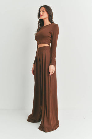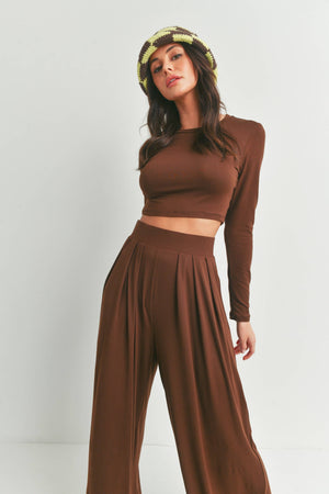 LONG SLEEVES CROP TOP AND WIDE LEG PALAZZO PANTS SET 96% POLY 4% SPAN MADE IN USA
